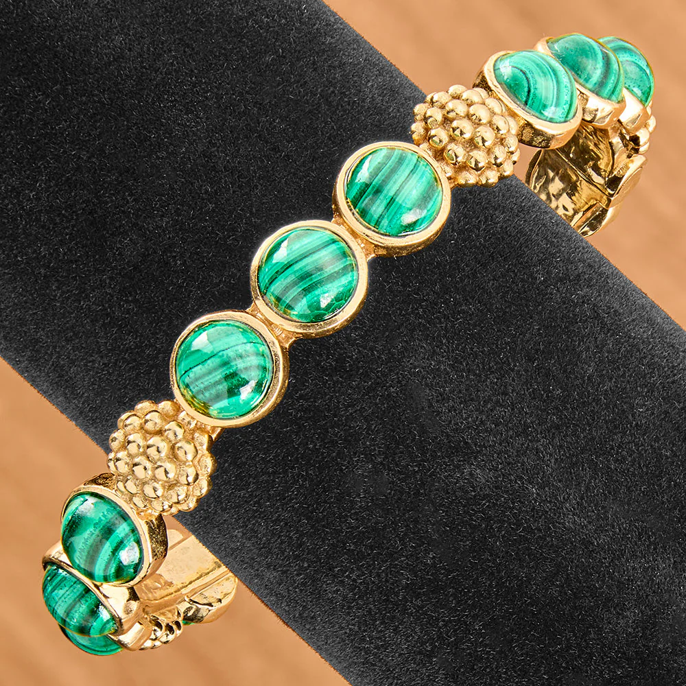 Capucine De Wulf Berry Gem Gold and Malachite Hinged Bangle Bracelet