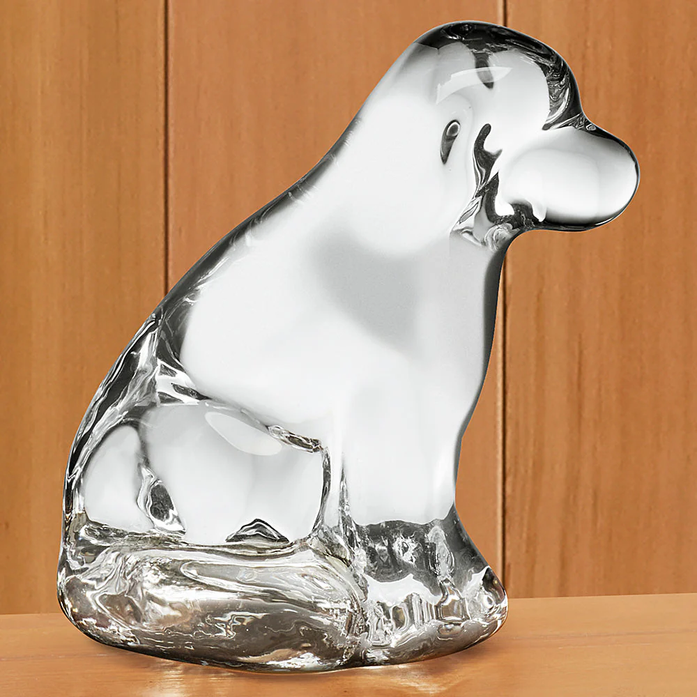 Simon Pearce Glass Figurine, Dog & Puppy
