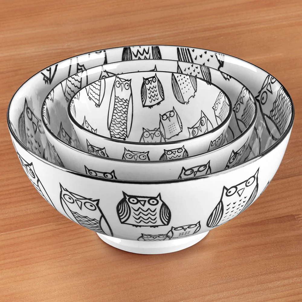Hip, fun and bold! The sketched owls on these bowls bring a playful, modern touch to your dining table for meals and entertaining.